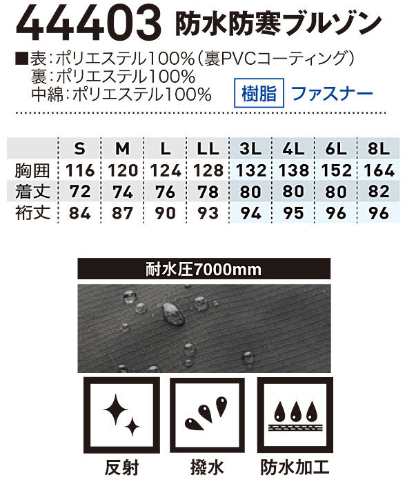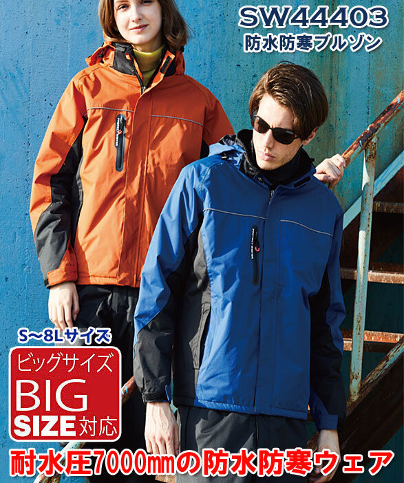 SW44403 防水防寒ブルゾン 耐水圧7000(m/m) 反射パイピングによる高い視認性