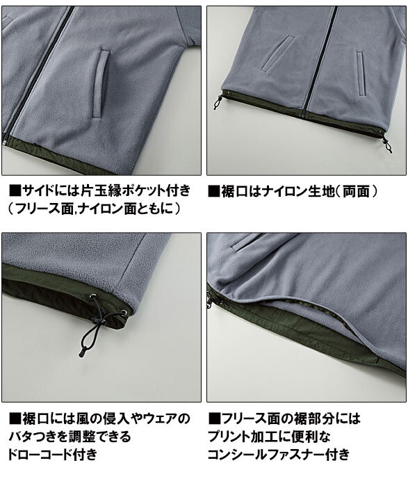 ■保温性 ■防風 ■防寒 ■裾にドローコード付き