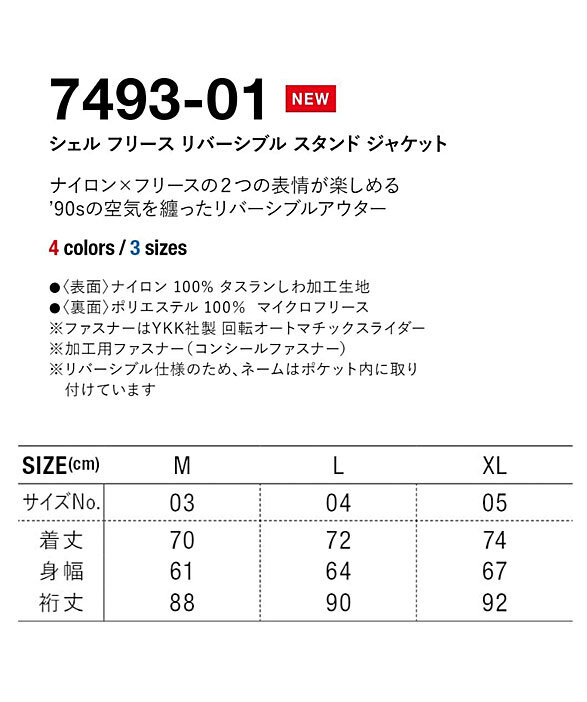 UnitedAthle 7493-01 シェル フリース リバーシブル スタンドジャケット