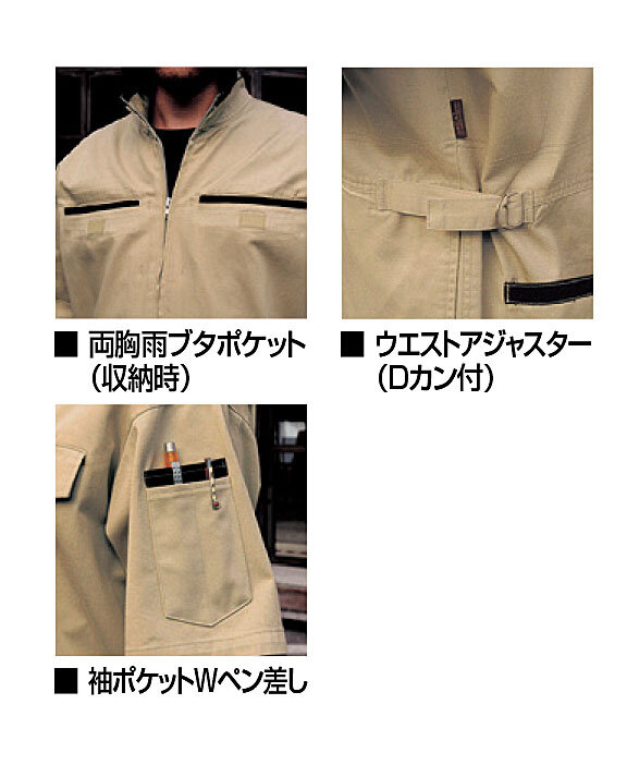 ■袖ポケットWペン差し ■ウエストアジャスター(Dカン付き)