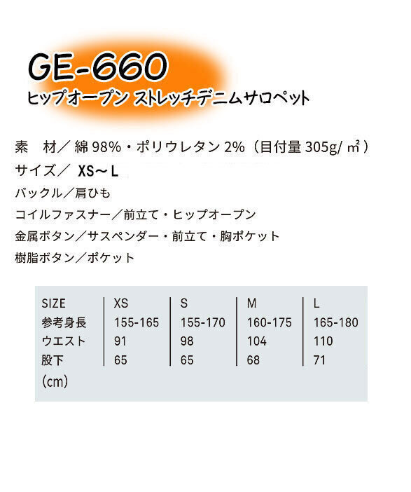 GE-660 ストレッチデニムサロペット ボーダレスデッキパンツ