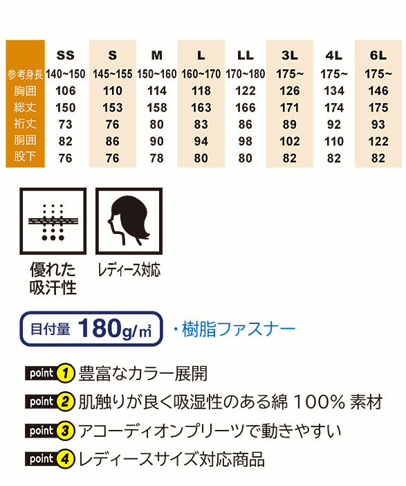 ■樹脂ファスナー ■優れた吸汗性 ■レディースサイズ対応 ■開襟 ■小さいサイズ