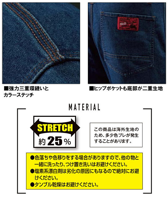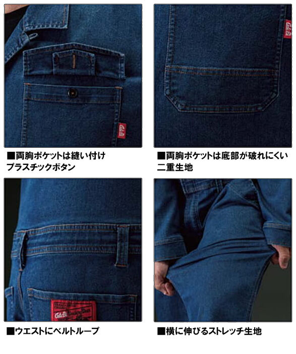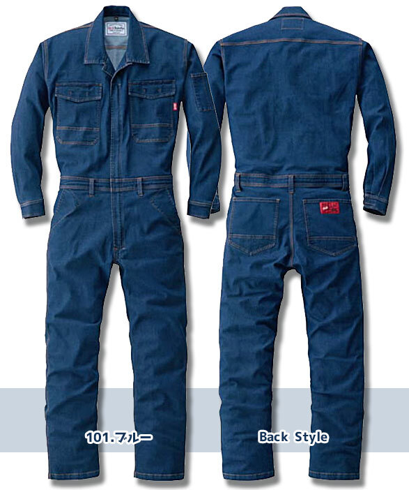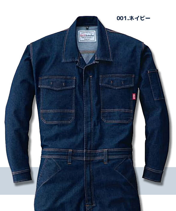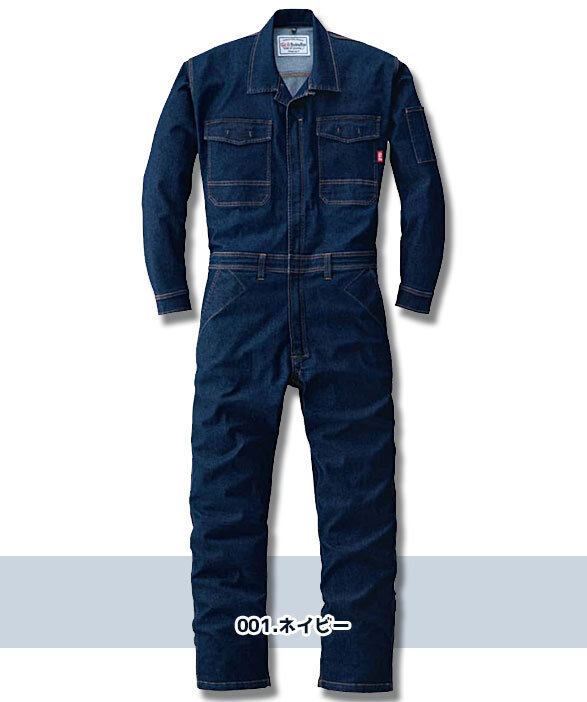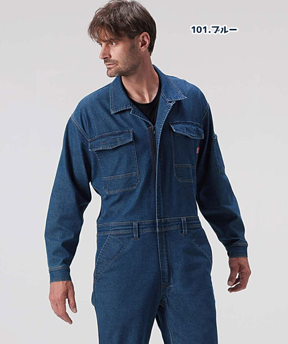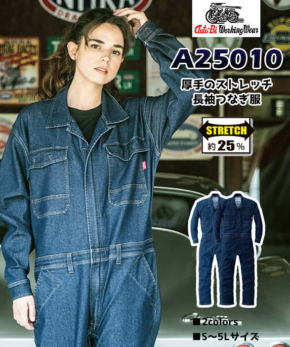 A25010 厚手ストレッチデニムの長袖ツナギ服