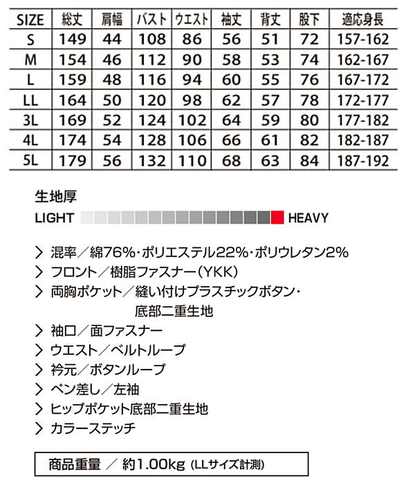A2670 Auto-bi ゆったりサイズ長袖つなぎ服 強力三重環縫・YKKファスナー使用 ¥6,765 ~(税込)