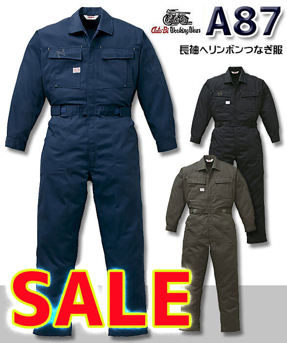 A-87 強力三重環縫で丈夫な長袖つなぎ服 YKKファスナー使用