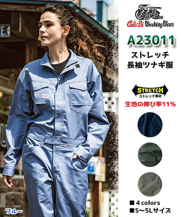 Auto-Bi A23011 ストレッチ長袖つなぎ服