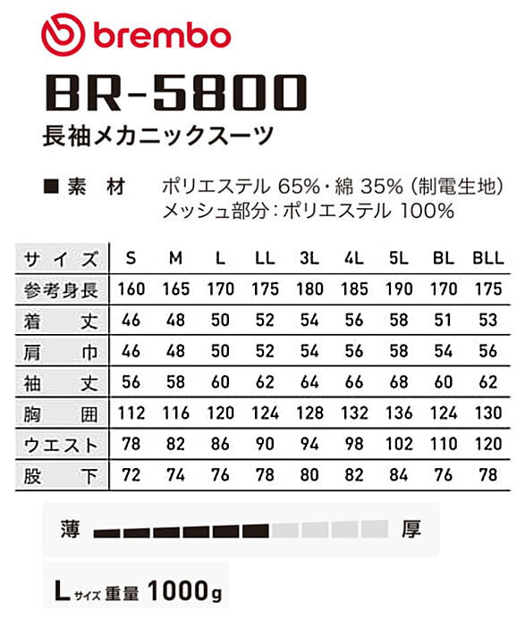 BR-5800 Brembo(ブレンボ) 長袖メカニックスーツ
