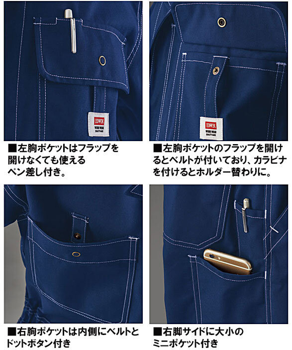 E-81008 EDWINストレッチデニムつなぎ服 伸び率20%以上 カジュアルスタイル