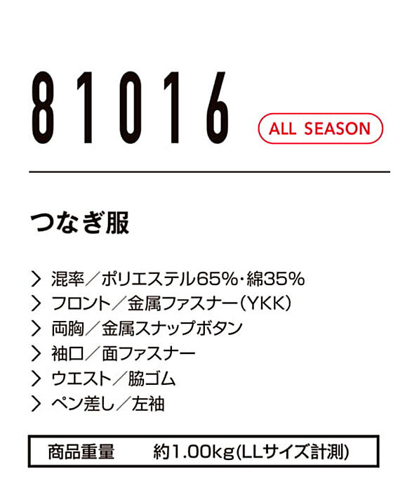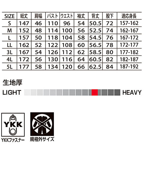 A2670 Auto-bi ゆったりサイズ長袖つなぎ服 強力三重環縫・YKKファスナー使用