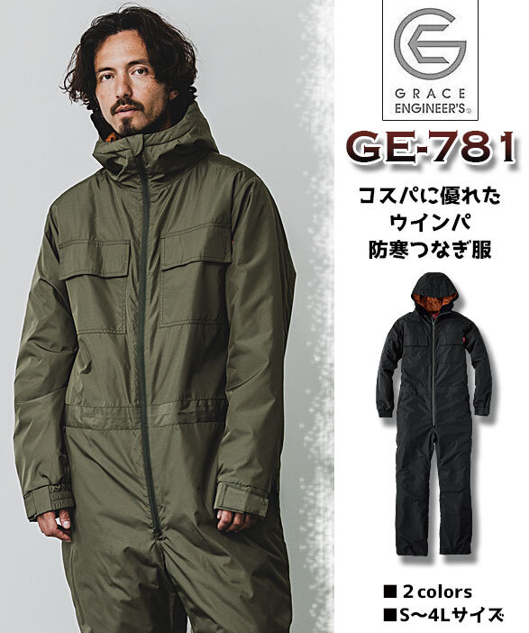 GE-781 ウインパツナギ2 フード付き防寒つなぎ服