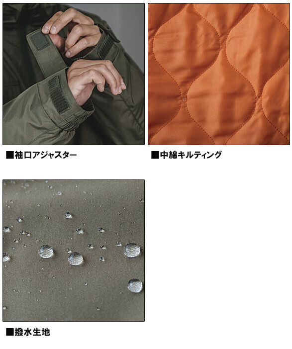 ■撥水生地 ■フード付き ■中綿キルティング ■防寒