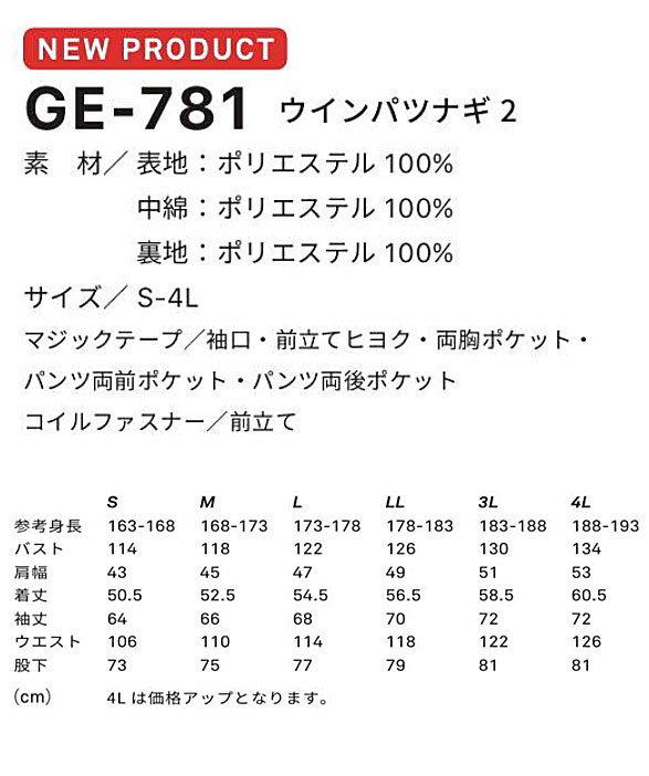 GE-780 ウインパツナギ服 防風・防寒つなぎ服 ¥6,556 ~(税込)