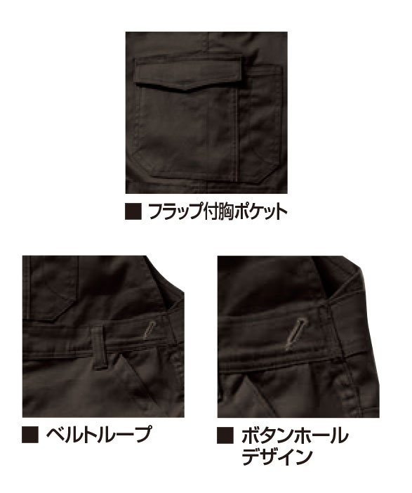 ■ヨコのびストレッチ ■フラップ付き胸ポケット ■ベルトループ