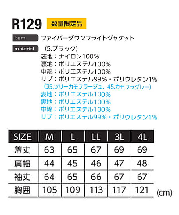 R-129 軽量防寒 ファイバーダウンフライトジャケット