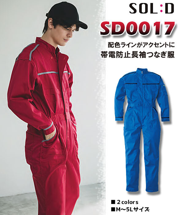 SOL:D ソルディ SD0017 【秋冬春】ライン入り長袖ツナギ服