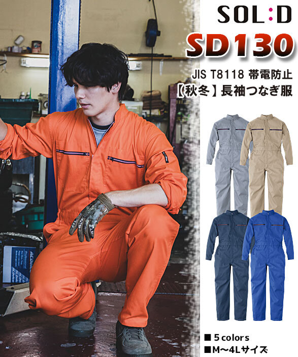 SOL:D ソルディ SD130 エコツイル帯電防止素材 長袖ツナギ服