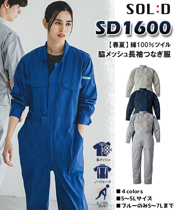 SOL:D ソルディ SD1600 春夏用トリカット型サイドメッシュ長袖ツナギ服