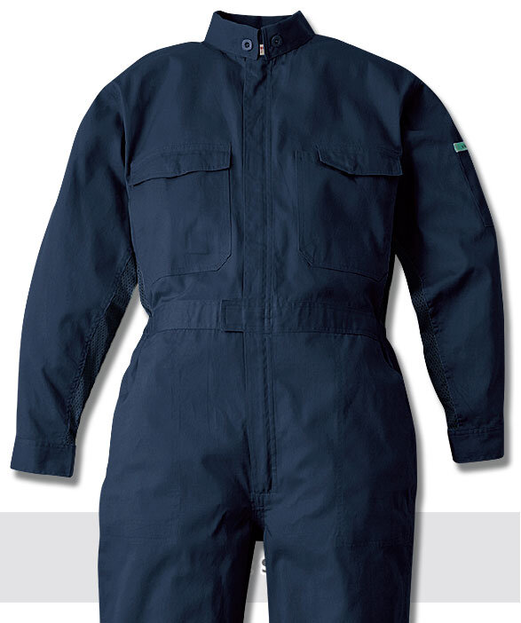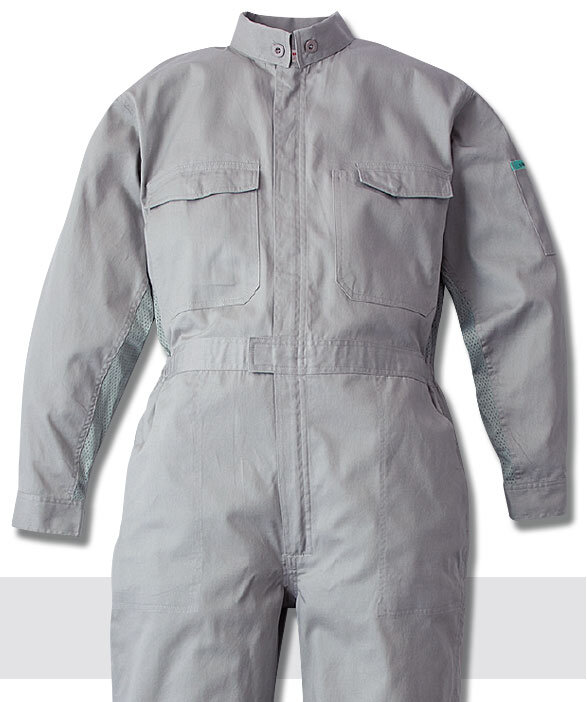 夏に最適な綿100% トリカット型サイドメッシュで通気性の良い長袖ツナギ服