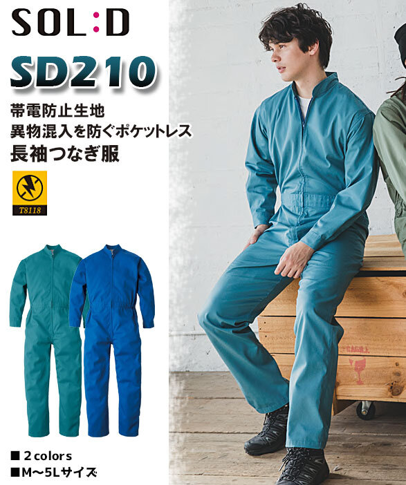 SOL:D ソルディ SD210 ポケットレス長袖ツナギ服
