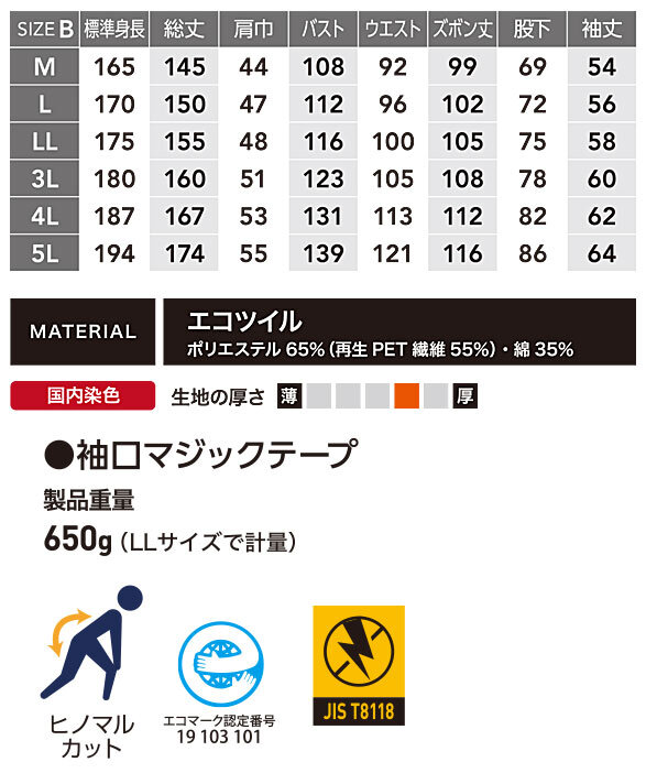 ■エコマーク認定番号 19 103 101 ■帯電防止 JIS T8118