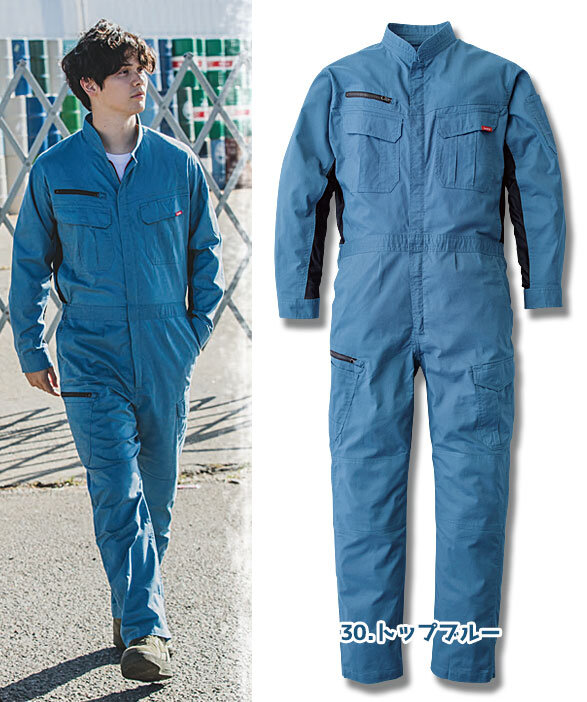 A8710 薄手サマー長袖ツナギ服 カーゴポケット付き