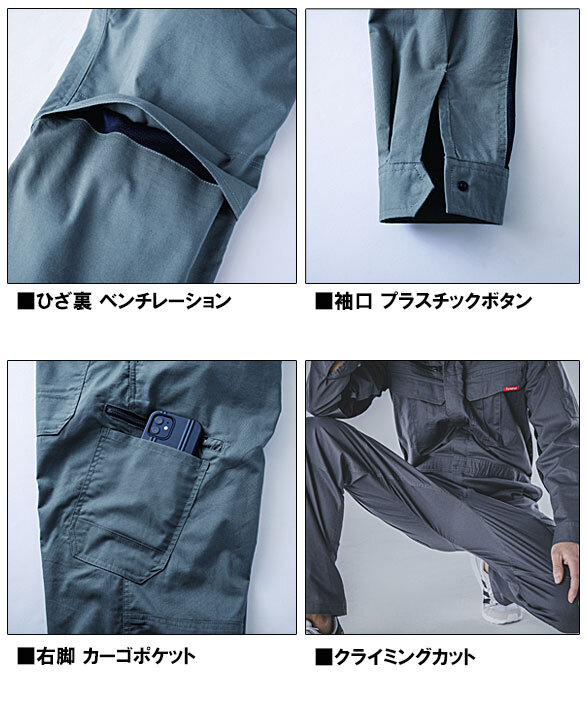 ■生地:薄手 ■股部分クライミングカット ■右脚サイドカーゴポケット