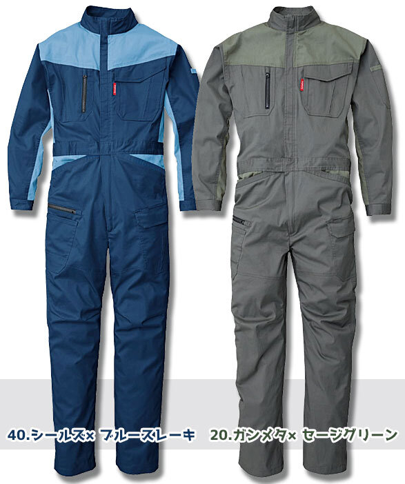 SD4300 【秋冬春】防汚加工・ストレッチ素材のスモーキーカラー長袖ツナギ服