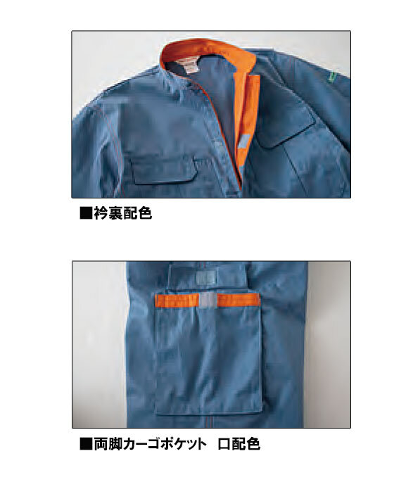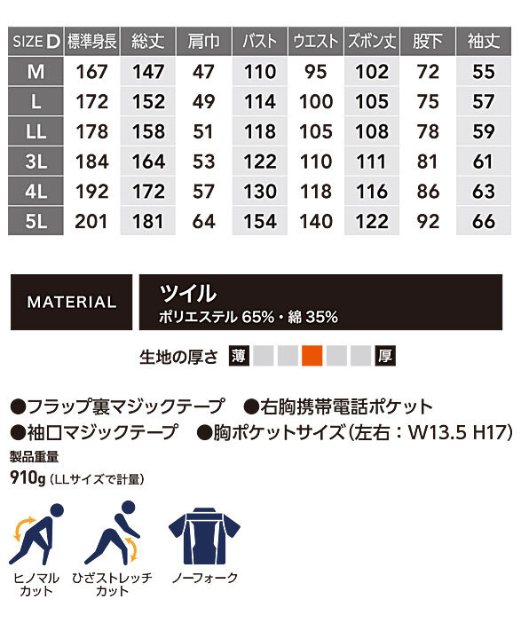 ■右胸携帯電話ポケット ■袖口:マジックテープ ■ひざストレッチカット