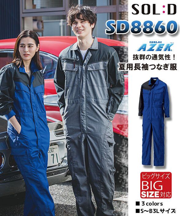SOL:D ソルディ SD8860 通気性に優れたAZEKⓇ 夏用長袖ツナギ服