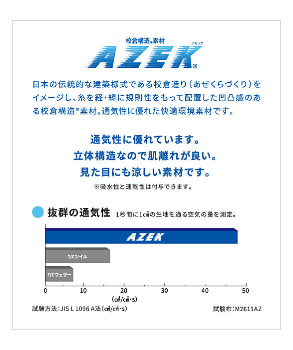 ■胸ポケットサイズ(左右:W14 H16.5) ■校倉構造Ⓡ素材(AZEKⓇ)