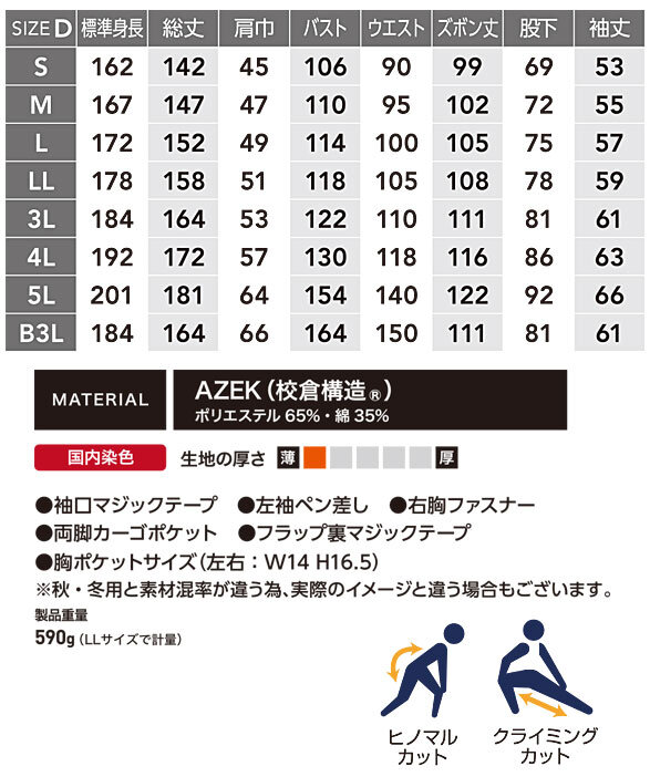 ■製品重量:590g(LLサイズ) ■右胸ファスナーポケット
