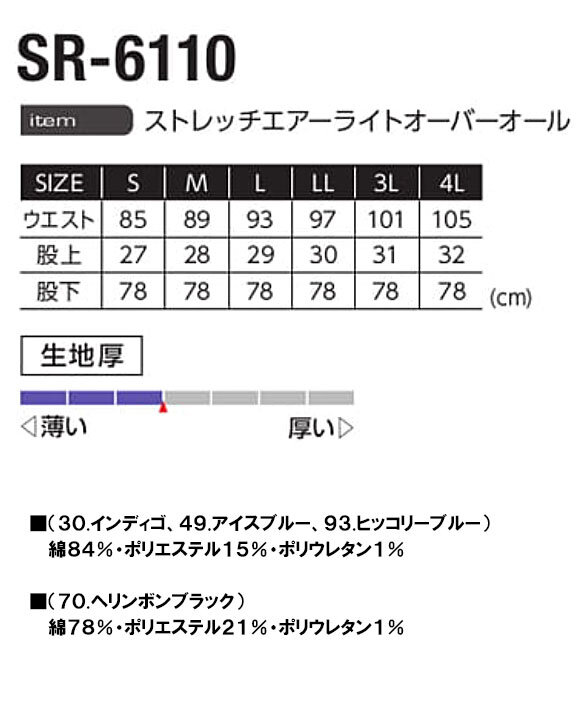 SR-6100 軽量ストレッチ 長袖ツナギ服