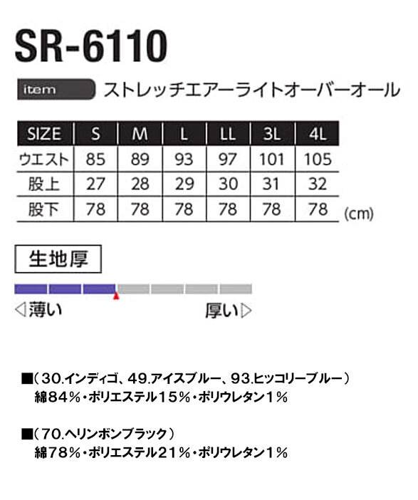 EVENRIVER SR-6110 ストレッチエアーライトオーバーオール