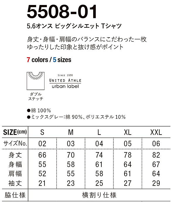 UnitedAthle 5508-01 5.6オンス ビッグシルエット Tシャツ
