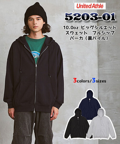 UnitedAthle 5203-01 10.0オンス ビッグシルエット スウェット フルジップ パーカ(裏パイル)