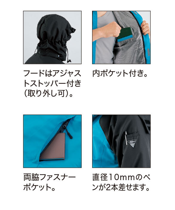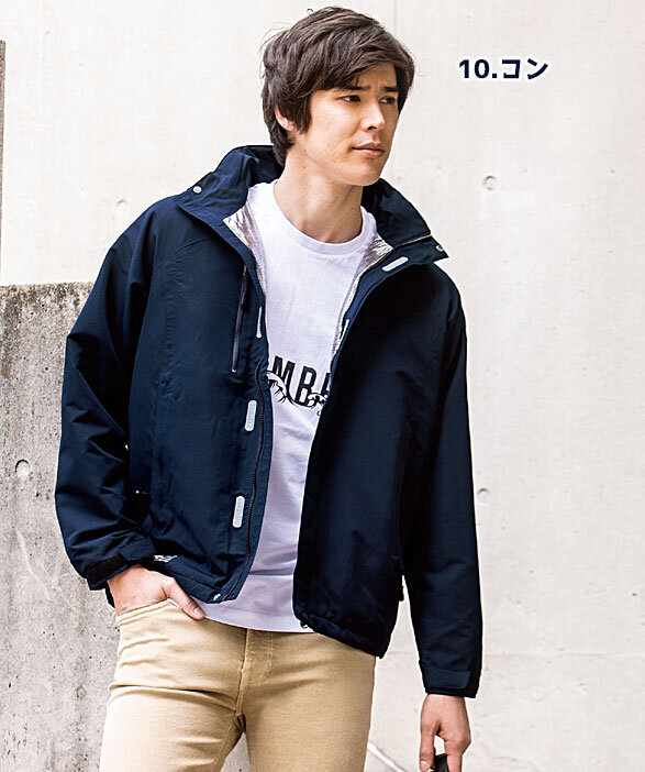 ■フード付き(フード取り外し可能) ■中綿:吸湿発熱機能で暖かさを持続