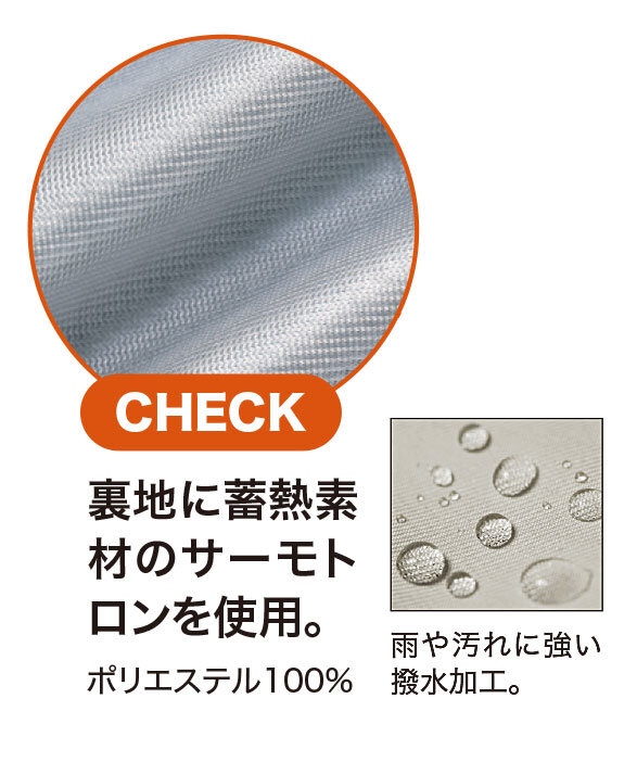 ■撥水 ■蓄熱素材サーモトロン ■軽量防寒 ■保温性