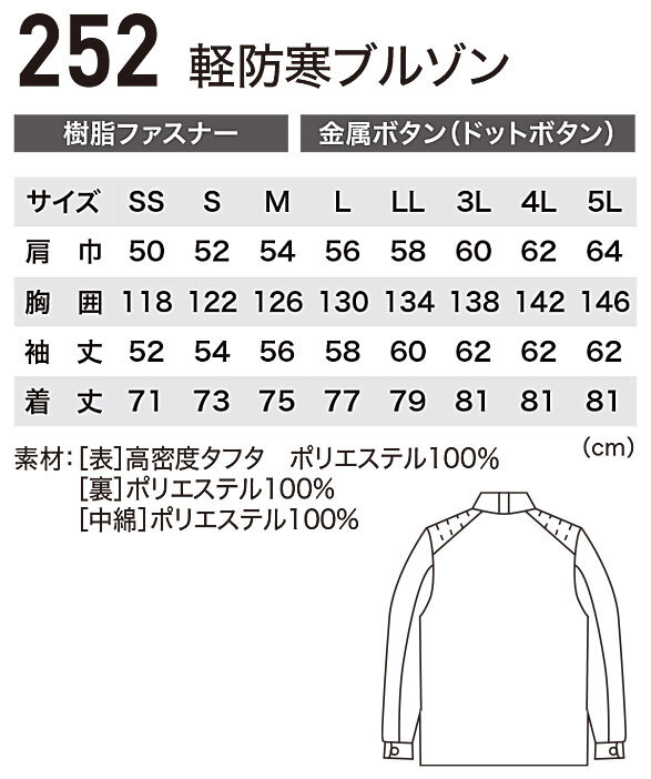 XE252 軽防寒ブルゾン 蓄熱素材の使用