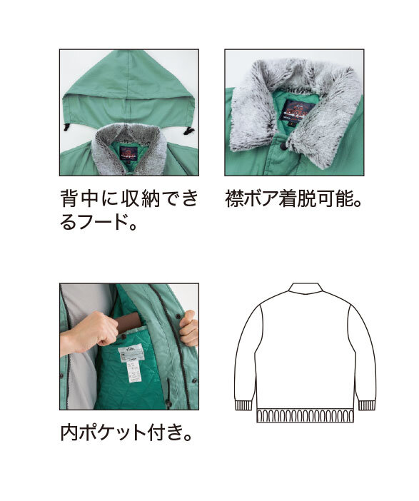 首周りを暖める襟ボアは取り外し可能。根強い人気のベーシックモデル。