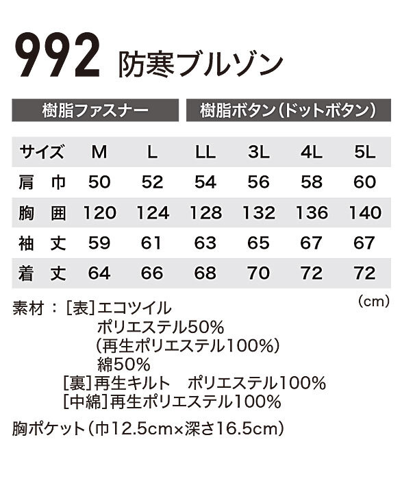 ジーベック XE992 超撥水加工防寒ブルゾン