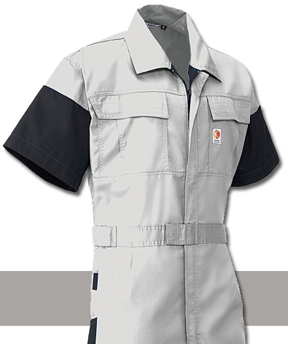 KM-257 Kansaiデザイン半袖つなぎ服 伸び率7%のストレッチ素材 ツートン
