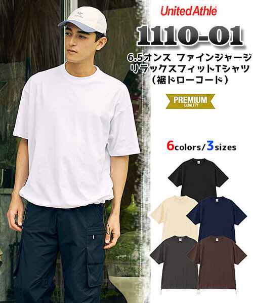 UnitedAthle 1110-01 6.5オンス ファインジャージ リラックスフィット Tシャツ(裾ドローコード)