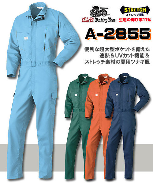 A2855 ストレッチ素材(吸汗速乾)の夏用長袖ツナギ服