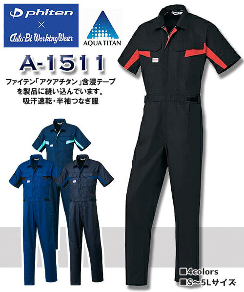 A1511 phitenファイテンコラボ半袖つなぎ服 ファイテン製アクアチタン含浸テープ採用(衿・袖口)