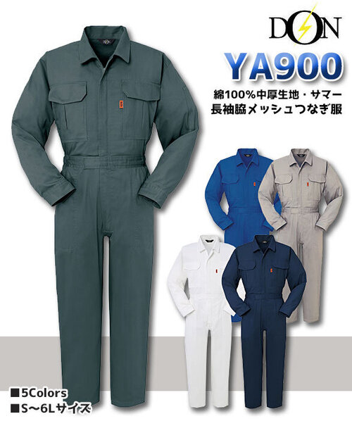 YA900 綿100%・脇メッシュサマー長袖つなぎ服