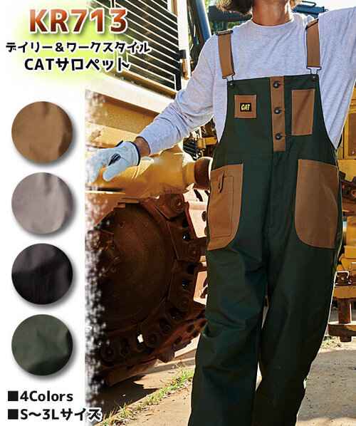 KR669 CATストレッチヘリンボーン長袖つなぎ服